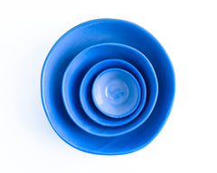 When nestled together, these bowls are a sculptural centerpiece or the ideal companions for meal prep. The blue and white swirls make these simple bowls into objects worthy of deeper examination. Cloudware is our proprietary blue and white clay, designed to echo historic Wedgwood Jasperware and mimic the blue, cloud- streaked sky of a North Carolina afternoon. Every piece captures a unique moment frozen in time-- no two are ever alike, just like the clouds on a summer day or the swirls and veins of marble.
