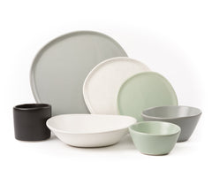 New for Fall 2024: Piedmont- Dinner Plate in Burl, Salad Plate in Birch, Side Plate in Matte Black, Pasta Bowl in Matte Black, Breakfast Bowl in Burl, Dessert Bowl in Fern, Chemist Cup in Fern Oslo- Dinner Plate in Matte Grey, Salad Plate in Birch, Side Plate in Celadon, Pasta Bowl in Matte White, Breakfast Bowl in Matte Grey, Dessert Bowl in Celadon, Chemist Cup in Matte Black