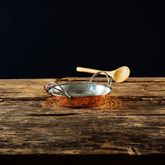 The warm glow of our heavy gauge Hammered Copper Paella Pan and the hot-tinned interior makes for the best socarrat, professional cooking performance, and dazzling displays. Fitted with our new, patented stainless steel handles, you’ll enjoy the beauty and function to a traditional classic. Not only are our handles heat resistant, they are also ergonomic and multifunctional.