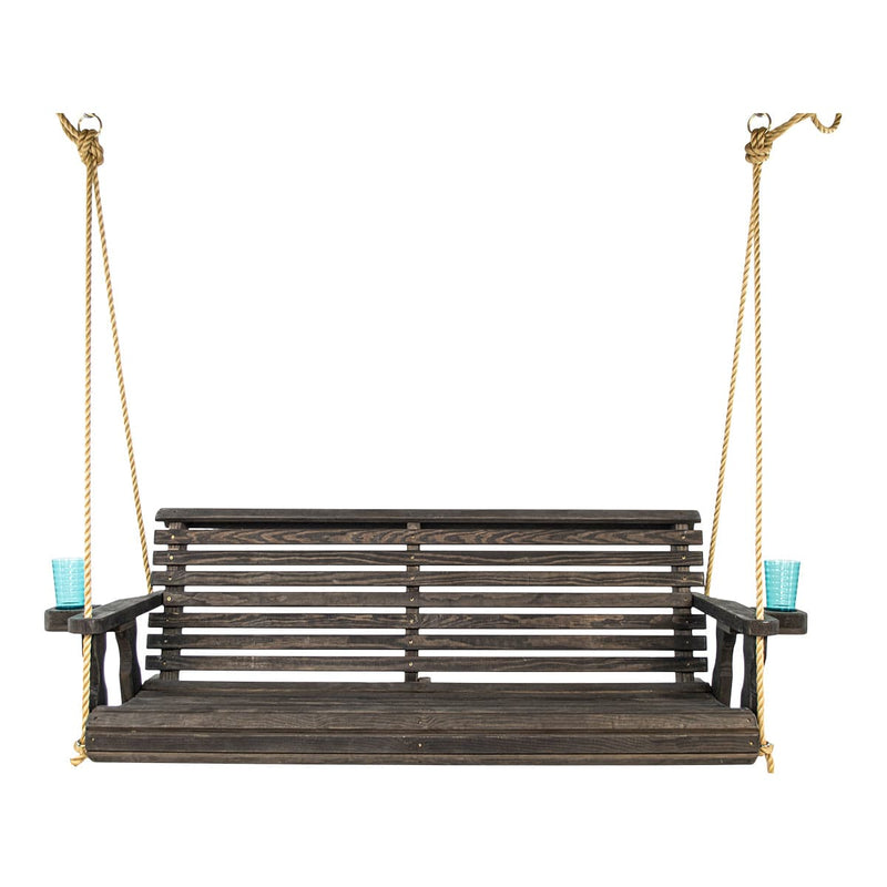 Amish Casual 3 Foot Roll Back Porch Swing in Dark Walnut with Clearcoat