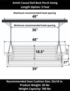 Amish Casual 3 Foot Unfinished Roll Back Porch Swing