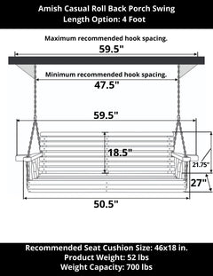 Amish Casual 4 Foot Roll Back Porch Swing in Dark Walnut with Clearcoat