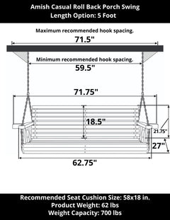 Amish Casual 5 Foot Roll Back Porch Swing in Grey Stain