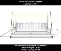 Amish Casual 5 Foot Uptown Porch Swing Bed in Clearcoat Unfinished