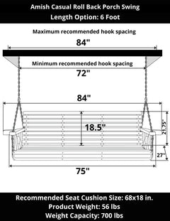 Amish Casual 6 Foot Roll Back Porch Swing in Black Stain with Clearcoat