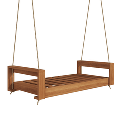 This Amish-made daybed swing, crafted from high-quality kiln-dried pine, offers versatile lounging and relaxation options with its backless design. Available in a variety of paint colors or wood stains, and featuring 100% acrylic exterior paint and Natural-Kote wood stain, this swing is built to last. Made in the USA, it can be hung from 2 or 4 points with your choice of black or tan Pro-Manilla rope.