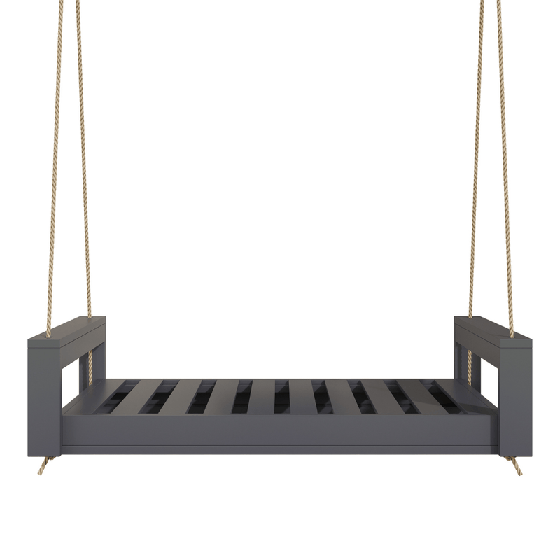 This Amish-made daybed swing, crafted from high-quality kiln-dried pine, offers versatile lounging and relaxation options with its backless design. Available in a variety of paint colors or wood stains, and featuring 100% acrylic exterior paint and Natural-Kote wood stain, this swing is built to last. Made in the USA, it can be hung from 2 or 4 points with your choice of black or tan Pro-Manilla rope.