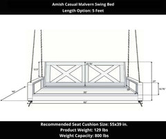 Amish Casual Malvern Porch Swing Bed, 5 Ft Oak