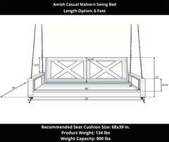 Amish Casual Malvern Porch Swing Bed, 6 Ft Oak with Clearcoat
