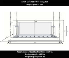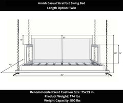 Introduce the Amish Casual Stratford Swing Bed into your outdoor space for a touch of handcrafted elegance. Made with Grade A kiln dried yellow pine and handcrafted by Amish craftsman in Pennsylvania, this swing bed is built to last and resist peeling and flaking with its 100% acrylic exterior paint. Choose from black or tan 3/4 in. thick Pro-Manila rope and add a cushion for ultimate relaxation. Made in the USA.