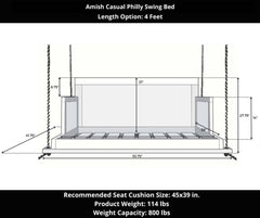 Experience the ultimate in outdoor relaxation with the Amish Casual The Philly Daybed Swing. Hand-crafted with high-quality, Grade A kiln dried yellow pine by Amish artisans in Pennsylvania, this swing boasts a durable frame that will last for years to come. Its contemporary design, complete with clean lines, adds a modern touch to any outdoor space. Hang from 2 or 4 points using your choice of black or tan 3/4 in. thick Pro-Manila rope. Cushions sold separately.
