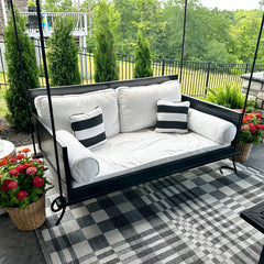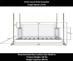 Experience the ultimate in outdoor relaxation with the Amish Casual The Philly Daybed Swing. Hand-crafted with high-quality, Grade A kiln dried yellow pine by Amish artisans in Pennsylvania, this swing boasts a durable frame that will last for years to come. Its contemporary design, complete with clean lines, adds a modern touch to any outdoor space. Hang from 2 or 4 points using your choice of black or tan 3/4 in. thick Pro-Manila rope. Cushions sold separately.