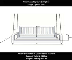 Elevate your outdoor space with the Amish Casual Uptown Wood Swing Bed. Made in the USA from high-quality, Grade A kiln dried yellow pine, this swing is hand-crafted by Amish craftsman in Pennsylvania for long-lasting durability. Cushions and pillows sold separately. Assembly required.