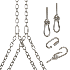 Upgrade your porch swing experience with the Barn-Shed-Play Heavy Duty 700 Lb Stainless Steel Porch Swing Hanging Chain Kit. Made of superior 304 stainless steel, this durable kit includes ceiling hooks, chains, quick link connectors, and swing swivel lags for a weight capacity of 700 lbs. Enjoy a quiet and smooth swing with neoprene washers included.