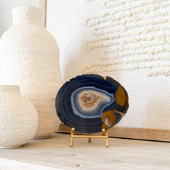 Slice is polished on both sides for two unique looks. Brass easel stand included.