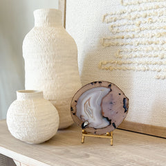 Elevate your home decor with our Brazilian Agate Slice. This unique slice is a natural work of art, displaying stunning patterns and hues that evoke the beauty of Brazil. Perfect for adding a touch of sophistication to any space. Made from premium natural Brazilian Agate, this slice will bring a touch of luxury to your home.