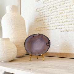 Slice is polished on both sides for two unique looks. Brass easel stand included.