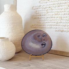 Slice is polished on both sides for two unique looks. Brass easel stand included.