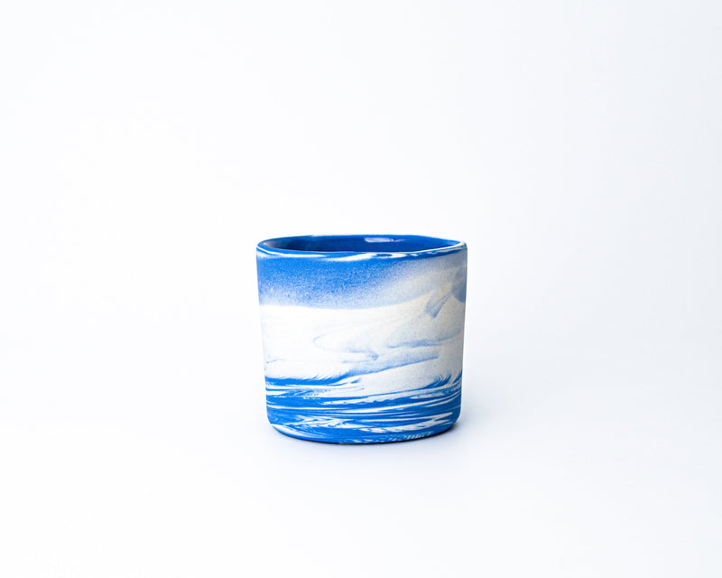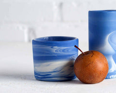 The Chemist Cup is the sort of thing you might find in a 19th century laboratory or in a shadowy alchemist’s den. Its compact cylindrical form fits perfectly in your hand and keeps a chilled cocktail cold or a cup of tea hot. In Cloudware finish, the Chemist Cup is a unique addition to any bar cart. Cloudware is our proprietary blue and white clay, designed to echo historic Wedgwood Jasperware and mimic the blue, cloud- streaked sky of a North Carolina afternoon. Every piece captures a unique moment frozen in time-- no two are ever alike, just like the clouds on a summer day or the swirls and veins of marble.