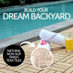 Coastal Natural Teak Outdoor Interlocking Tiles, 12 Slat (10 sq ft)