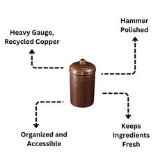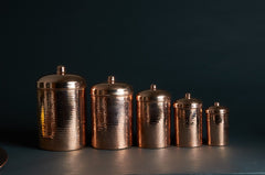 100% solid copper canisters kitchen are excellent natural, clean elements to incorporate in your kitchen due to copper's many natural properties that benefit our health. Improved design, better closure, solid construction. Add elegance and function to your kitchen with our range of copper canisters for storing items that turn over such as flour, cookies, sugar, coffee, tea, rice, etc... Our copper scoop makes a great addition to this set.