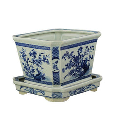 Floral Square Planter with Tray