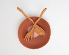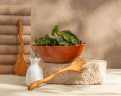 Our Fruit Bowl makes the perfect salad bowl, in addition to being an admirable fruit or produce holder on your countertop, a batter bowl, or a centerpiece. For the full, deluxe, elevated salad experience, pair this bowl with our Olive Oil Cruet and add a pair of delightful handmade salad servers, whimsically carved to look like hands. Looking for just the Hand Salad Servers? Shop here