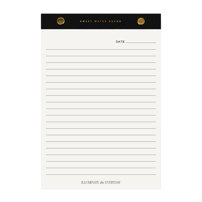 Keep your day organized with our classic Lined Notepad, the perfect everyday essential for work, home, and everything in between. Thoughtfully designed with clean, simple lines and finished with chic gold rivet accents, this notepad adds a touch of elevated style to your workspace.