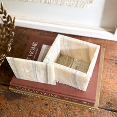 Elevate your space with our stunning Grey Onyx Lidded Box. This sleek and modern box is perfect for storing trinkets or keepsakes while adding a touch of luxury to any room. The natural grey onyx adds an elegant and unique touch, making it a must-have for any room.