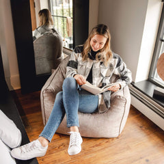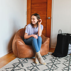 Snuggle up and feel the cozy wrap of the Big Joe Hug. Structured stitching on the back panel ensures you get the support you need for reading, gaming, or taking a snooze. On the move? Take the Hug with you wherever you go with its convenient carrying handle.