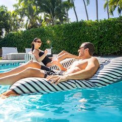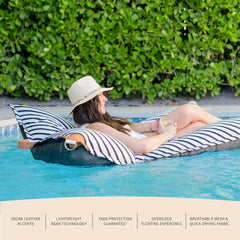 Drift off into pure relaxation with the Lux Lagoon Pool Lounger. As water flows through the float, Big Joe's no-air-required lightweight bean technology embraces every contour, and hugs your entire body in comfort. This premium oversized pool float is crafted with soft and breathable Premier Mesh fabric that's fade-resistant* and has a luxuriously smooth finish that doesn't stick to you. Its durable mesh bottom allows for effortless water drainage, and vegan leather accents, handles, and metal loops provide an elevated look and feel. Once you recline into the Lux Lagoon Pool Lounger, you won't want to leave!