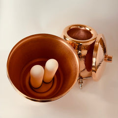 Health Benefits: The use of copper in water storage is an ancient practice with known health benefits. Copper is believed to have antimicrobial properties and may help in the reduction of harmful pathogens. Drinking water from a copper container, as per Ayurvedic traditions, is thought to balance the energies of the body. The filtration system further removes contaminants like bacteria, chlorine, fluorides, and lead, ensuring that the water you drink is not only clean but also beneficial for your health.