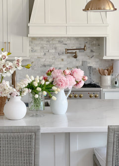Offering permanence and exquisite botanical details that replicate nature's beauty, this pretty pink artificial peony flower bundle is a must for elevated floral designs. It has a combination of open blooms and buds, perfect for giving any arrangement a natural-looking appearance. Drop the bundle of faux blooming peonies in a vase to style an elegant centerpiece in a snap, or separate the bundle to build your own wedding bouquet.