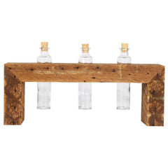 This unique vase transforms a single stem into a beautiful statement piece. It's the perfect addition for any modern farmhouse or rustic wedding. We hand-make each wooden stand from century old 2x4's salvaged from demolition homes around Chicago, IL. The glass bud vase simply slides in through the top, allowing one to easily clean the glass when necessary. We custom designed the bottle to be the perfect stem vase. The 6" length, slight taper and small neck allow more water storage while holding the stems in an upright position.
