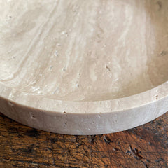 Add a natural touch to any space with our Round Travertine Tray. Hand crafted in Portugal from premium travertine, each tray is unique and features intricate natural patterning that will compliment any decor style. Its round shape adds a touch of elegance while its durability ensures long-lasting use.