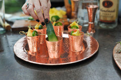 Solid copper, ideal for shooting, sipping or popping your favorite spirit. Chill these elegant tiny cups on ice to serve your fine spirits. Or take your time, hold your liquor, chat awhile, let the conductive properties of copper warm your favorite spirit to body temperature as you enjoy. A great and unbreakable companion to our Espadin Flasks, grab some to go with you on your travels.