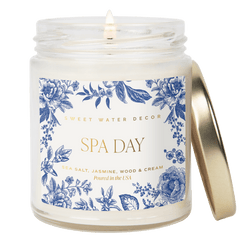Captivating notes of sea salt, fresh jasmine, warm wood and cream will transport you to a relaxing place, leaving stress behind. Crafted with clean-burning soy wax, our Spa Day candle creates a beautiful and spa-like environment wherever you are.