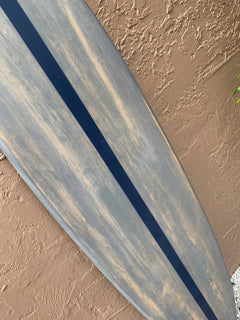 Back of surfboard gets a coat of wood sealer. Also the Tiki Soul logo and is signed and dated by myself or partner.