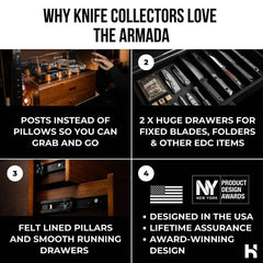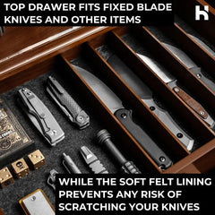 - Fixed Blade Friendly: Now with room for up to 8-9 fixed blades in the top drawer.