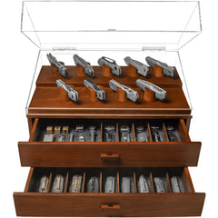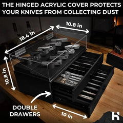 - Massive Capacity: Display up to 9 favorite knives on felt-lined pillars and store an additional 30-40 in the spacious drawers, making it the ultimate collector knife display case.