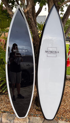 Black surfboards also comes in two amazing finishes, high gloss or matte to match any decor. Also the backs feature Tiki Soul logo and artist signature and date.