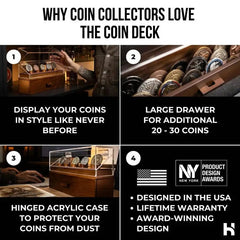 The acrylic cover protects the coins from harmful dust particles. You’ve done the collecting, let The Coin Deck do the protecting!