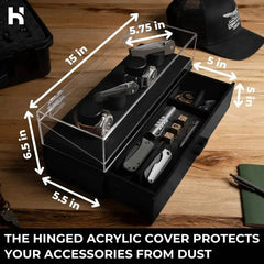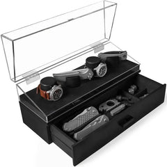 The transparent acrylic cover stands at a 90-degree angle, so you can easily select your timepiece or knife from your watch boxes.