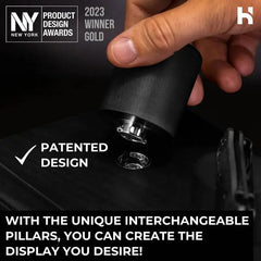 For a customizable display knife and watch organizer, upgrade to 4 extra interchangeable posts, including 2 watch posts and 2 knife posts.