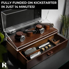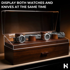 This knife and watch storage box is a stylish statement piece for your shelves, desk, or nightstand.