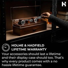 The innovative interchangeable posts set this knife and watch box organizer for men apart from the competition.