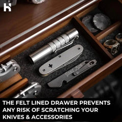 The felt lined drawer also protects cufflinks, lighters, pens, rings and more.