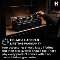 The innovative interchangeable posts set this knife and watch box organizer for men apart from the competition.