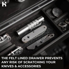The felt lined drawer also protects cufflinks, lighters, pens, rings and more.
