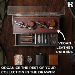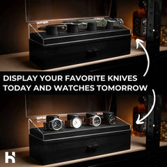This knife and watch storage box is a stylish statement piece for your shelves, desk, or nightstand.